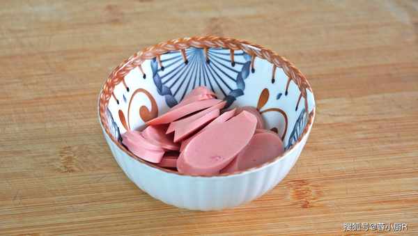 2、火腿腸一根,切片備用。
