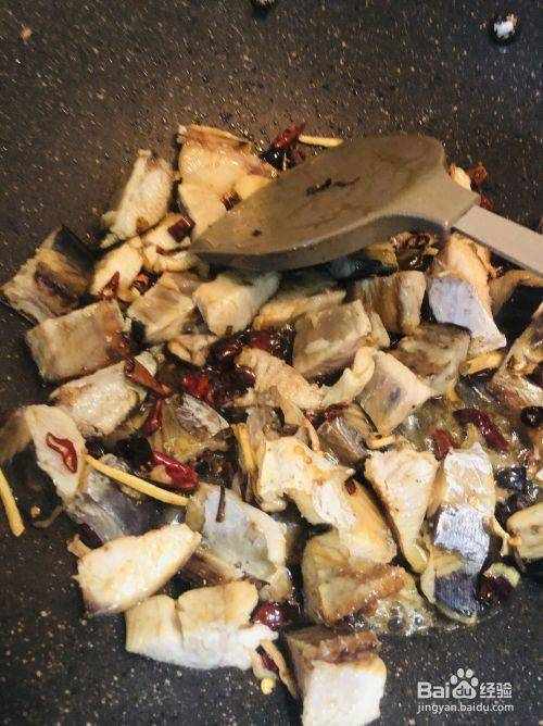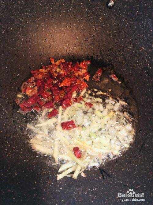 2.熱油,蔥,薑,幹辣椒,炒。比炒菜多一點油
