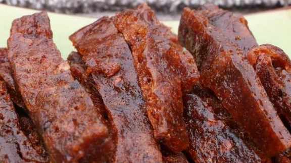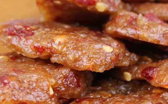 蒸熟直接就可以切成自己想要的樣子了,切成條形那就像辣條,切成方形與猪肉脯就很接近,當地的小夥伴真是有口福了,這種小吃的做法相對還是有些複雜的,不過成品的味道獨特,比起吃到嘴裡的享受,這一切都值得了。