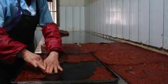 大家都知道辣條是豆類製品做成的,但是這龍遊豆豉,食材卻是很有意思,不僅有糯米粉,南瓜幹,還有柚子皮白糖辣椒醬等組成,十分的實在,做法是先將這些食材切碎混合一起。