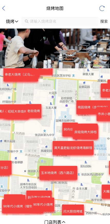 淄博燒烤服務內置“燒烤地圖”,集合淄博1200餘傢燒烤店信息,用戶可隨時搜索查找距離最近的燒烤店地址,並定位導航前往。同時,服務同步推出“八大局市場美食地圖”,詳細展示淄博網紅美食聚集地“八大局市場”的各類美食分佈,方便用戶“打卡”美食。