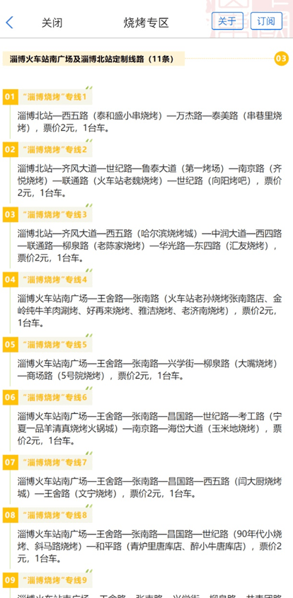 為打響“淄博燒烤”品牌,淄博市聚焦運營服務,積極探索創新服務模式,對途經燒烤店的常規公交線路進行重新摸排,並新增多條定制公交線路,提升公共交通出行品質。同時,推出“打卡熱門燒烤店”線路攻略,旅客可在淄博燒烤服務查看定制公交路線,查詢實時公交,出示“愛山東”乘車碼便捷乘坐公交出行。