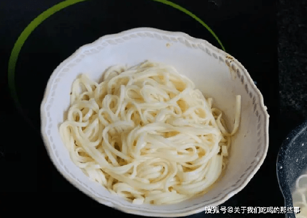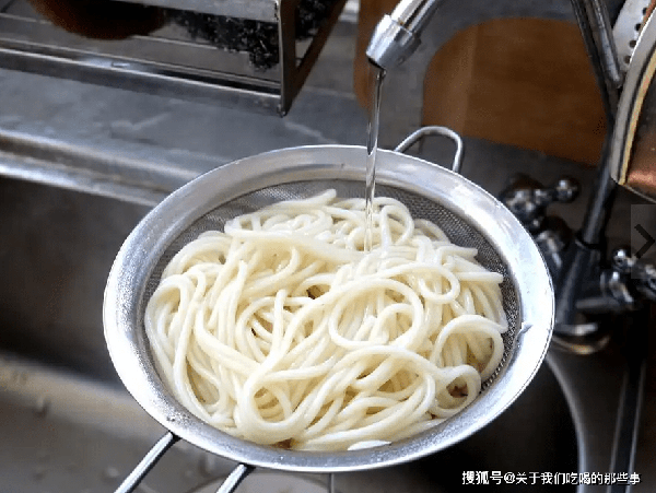 如果把煮熟的面條直接撈出碗中,放一會兒就會粘連在一起,成瞭一大坨,賣相差、口感差。應該把撈出來的面條放入冷水中過一道,或是直接用冷水沖一下,讓面條降溫,口感特別筋道;並且沖洗掉表面黏糊的淀粉糊,這樣就不會粘連瞭,根根分明。