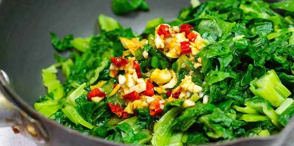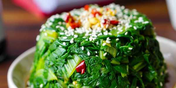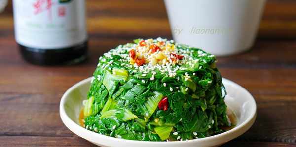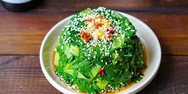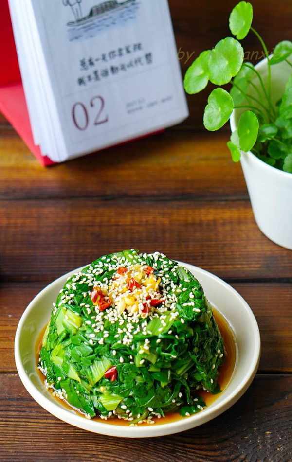 蒜香牛皮菜材料:牛皮菜,薑,大蒜,幹辣椒,生抽,鹽,食用油,醋,熟芝麻。