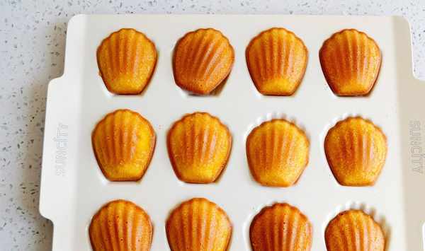 9.出爐後放涼,將瑪德琳蛋糕翻面。