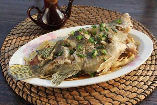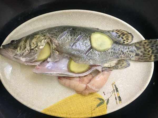 2.將醃好的鱖魚用水沖洗一次,在魚身兩側劃十字形刀花,平放在盤內,上面放蔥段、薑片、精鹽(三分)、黃酒和食油,上籠用大火蒸十分鐘左右,見魚眼球突出取出即成。