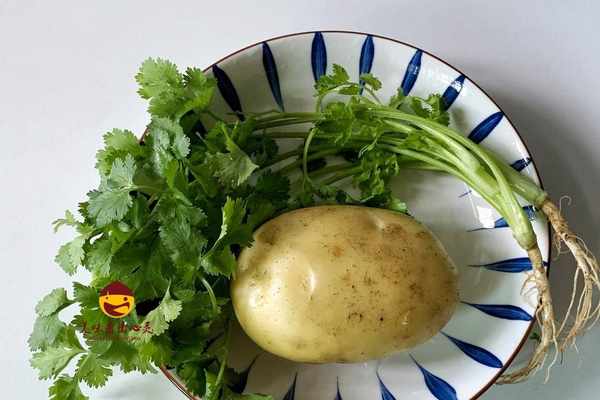 所需食材:土豆3個,香菜2棵,孜然粒一勺,辣椒粉一勺,白芝麻一勺,老抽一勺,雞精半勺,花生油適量。