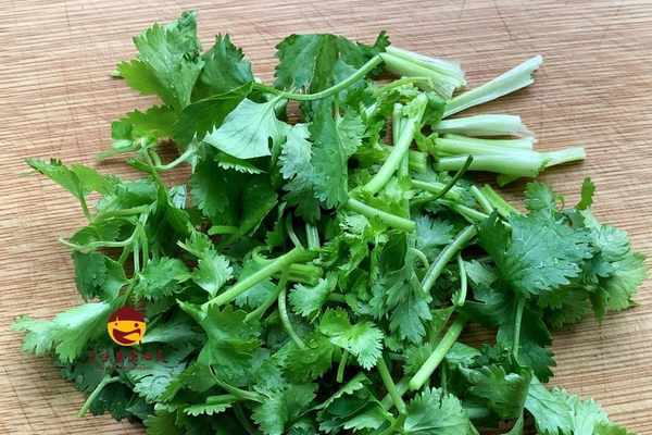 第一步:準備2棵香菜,去掉香菜的黃葉和根須,後用清水清洗幹凈,再切成段備用。