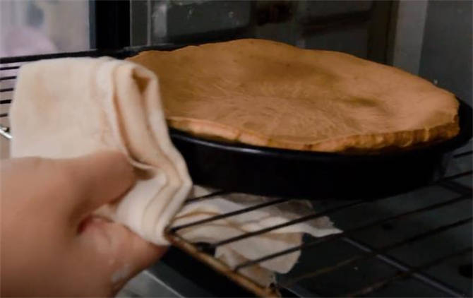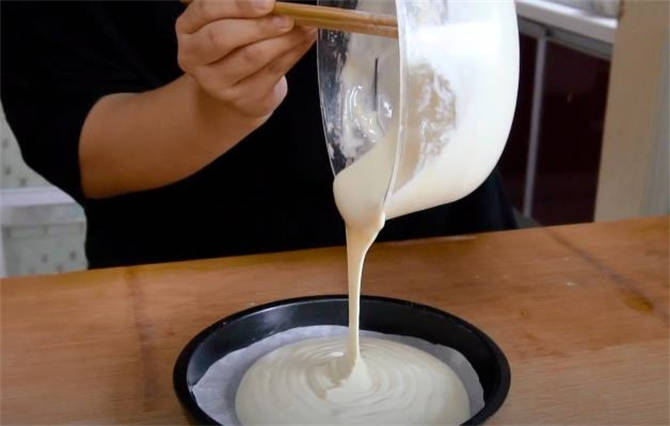 2.再準備一個模具出來,我是直接用的披薩烤盤,下面鋪上一張油紙,把這個調好的糊直接倒進去。