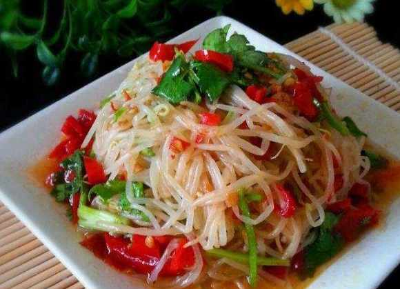 油潑豆莛是孔府傳統名菜。是以豆芽、花生油、香油、花椒等為主要資料,經多道工序精心製作而成。它是椒麻口味,它的成菜,豆芽色白如玉,吃著生脆可口。花椒味美,吃完齒頰留香,它還具有利尿、清熱、解毒等功效。