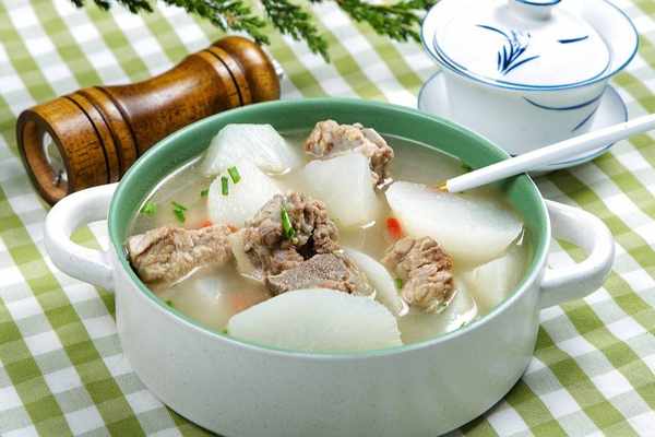 3、大火煮開後轉小火煮燉30分鐘左右。加入白蘿卜繼續煮燉