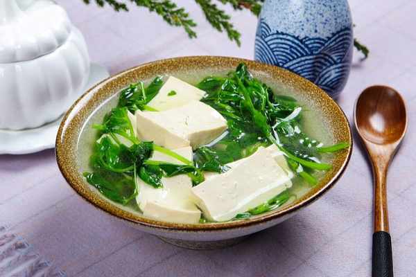 原料:豆腐1塊、菠菜1把、五花肉少量