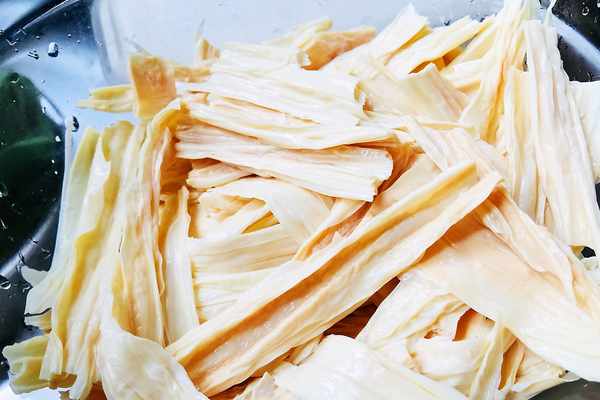 第一步:首先需要將腐竹泡發。腐竹泡發是有相關技巧的,建議用溫水加一點鹽泡,這樣腐竹漲發會比較快些,還有就是利用重力的關係,將腐竹壓制在密閉的水池環境裏,保證腐竹的上上下下都可以接觸到溫水,這樣腐竹才會漲發得均勻,不至於說漲發之後還出現硬塊,這樣吃起來會口感很差的。