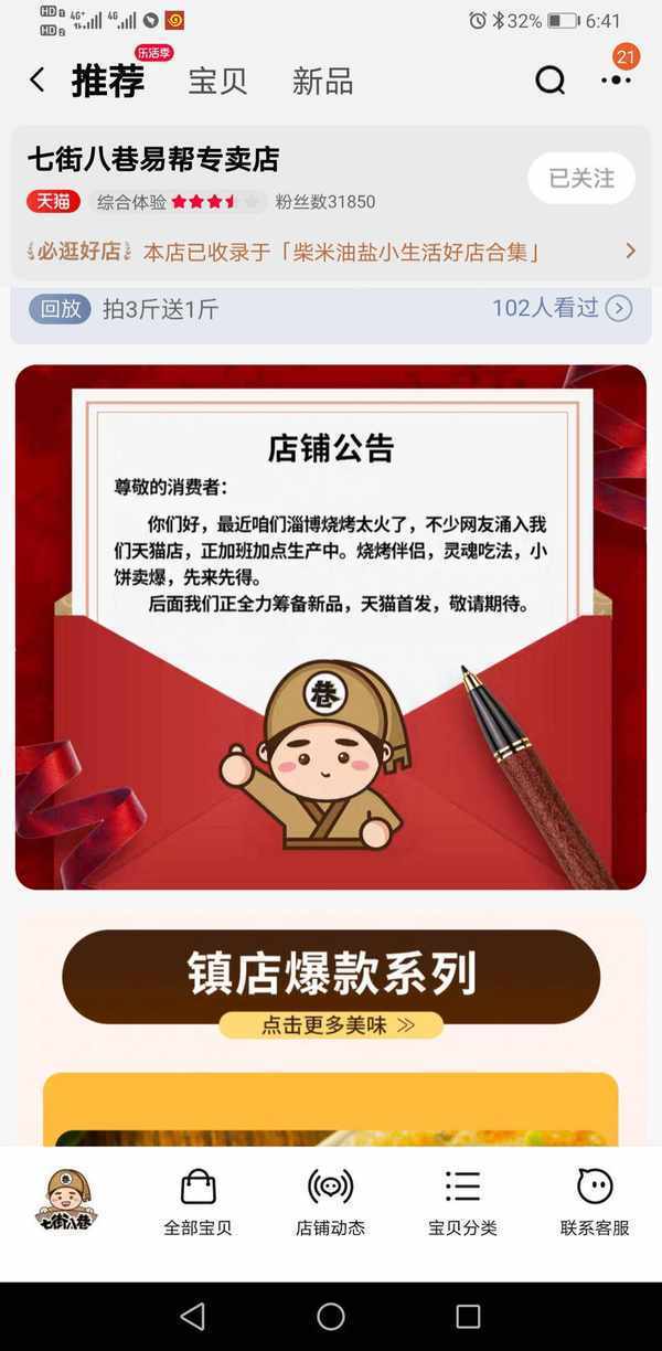 據悉,部分店鋪已經日銷千單。一傢賣淄博卷餅的天貓店“七街八巷”的店鋪發佈公告稱,最近生意太火,正加班加點生產中。店鋪老板指出,3月19日上架的一款卷餅不到一個月就日銷千單,打包工人24小時輪班都忙不過來。