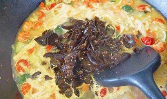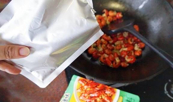 5、倒入1/3包傢樂金湯蒜蓉小龍蝦醬料