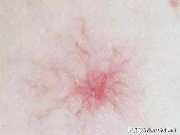 蜘蛛痣形似蜘蛛,以中央痣點為覈心,向周圍輻射的小血管。(杜先生案例)