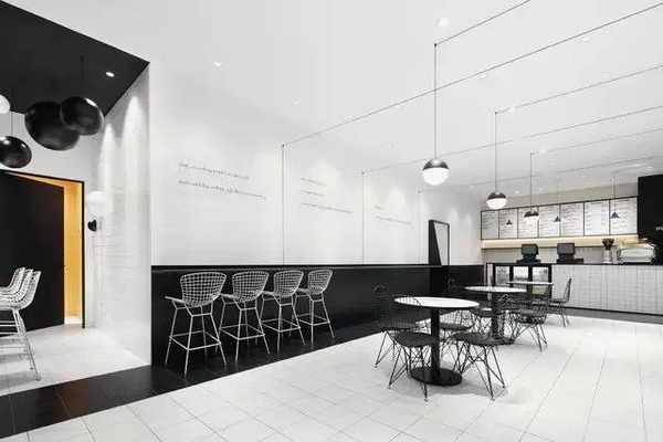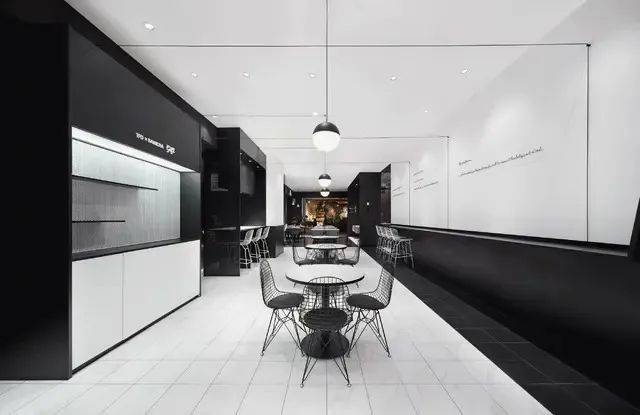 因此,餐廳選擇什麼樣的風格,必須是買手店部分時尚態度的延伸。在一尚門旗艦店的這個案例中,鄭錚最終堅持選擇瞭黑白色系,正是因為這種酷炫的工業設計風格,更能夠與主流咖啡館有所區別,吸引“非主流人群”的註意力。