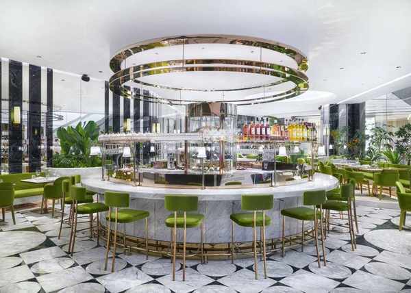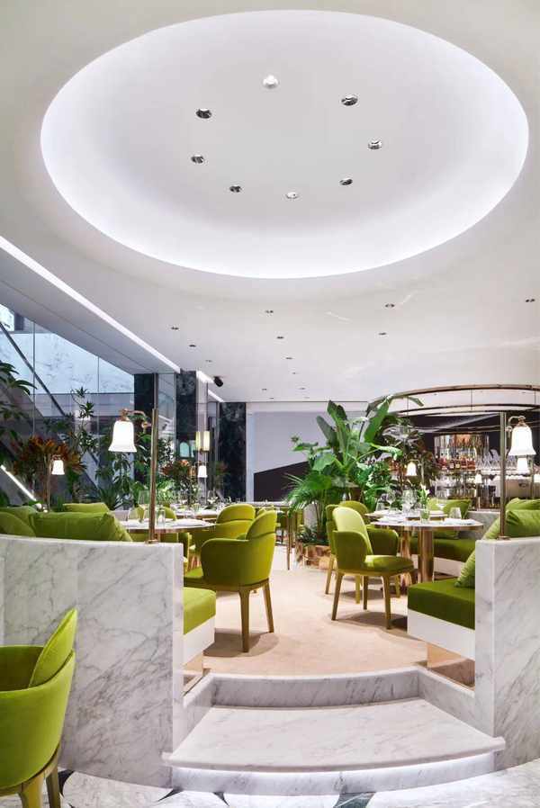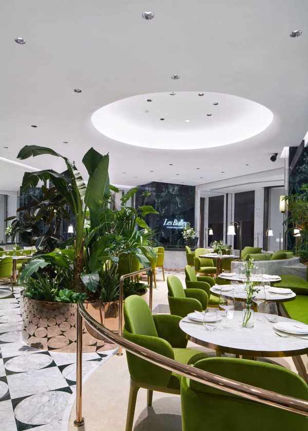 不久前,上海南京西路上的奢華購物地標錦滄文華廣場中最先開業的買手店Justluxe在店鋪對面的商場4樓中庭位置開出瞭自傢的餐廳——Les Bulles香檳餐廳。這傢創意性地中海餐廳,不僅提供健康的健康融合美食,也推出由專業品酒師推薦全世界搜羅的特色香檳和美酒,以及隱藏款雞尾酒單。餐廳綠植與金屬光澤環繞的典雅用餐環境、香檳金與大理石材質拼接的環形吧臺設計讓這裡成為錦滄文華廣場裡購物逛街之餘的絕佳去處。