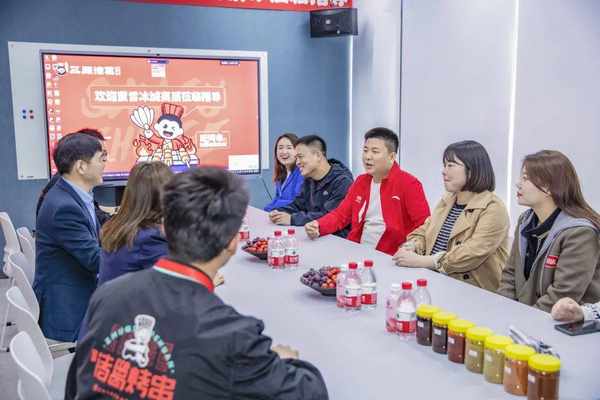此次蜜雪冰城考察團來到三顧諸葛烤串總部,實地參觀辦公環境,瞭解企業文化。