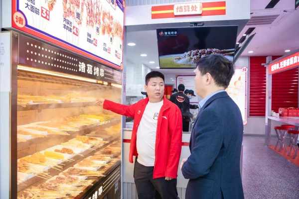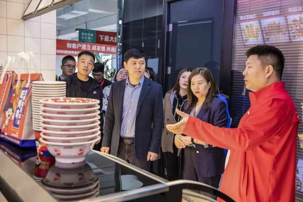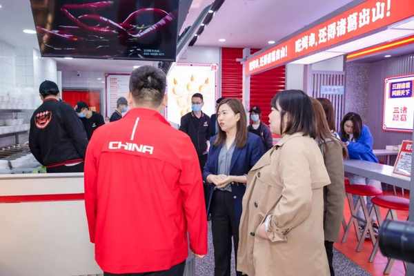 在工作人員帶領下,時總一行人來到門店實地參觀,對門店設備使用、原料選擇、食材儲存、操作流程等進行瞭詳細瞭解。
