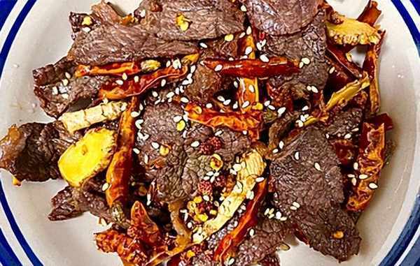 做法:這道菜可以先將牛肉幹巴放入清水中煮兩到三分鐘左右後撈出瀝幹水分,這樣做的好處是洗掉幹巴的一些鹽分(也可省略)。然後起鍋燒油,在油溫加熱到3成熱左右時下入牛肉幹巴,然後一直炸到幹巴表面看著有一點微焦時下入幹辣椒、花椒粒,榨至幹辣椒微微變色時撈出,剛入芝麻粒,這道油淋幹巴就做好瞭。這道經典的雲南下酒美味吃起來嚼勁十足,回味無窮,而且這道油淋幹巴越嚼越香,用來下酒更是一絕。