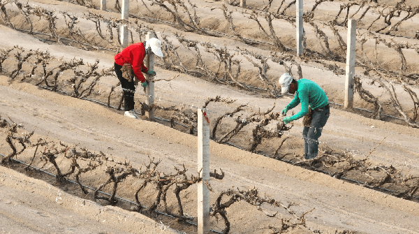 高品質的葡萄酒是吸引源源不斷的遊客前來體驗的重要法寶,釀造優質葡萄酒的原料是保證品質最不可或缺的一環。當天,在新疆天塞酒莊的葡萄園裡,工人正在有序進行葡萄藤上架和滴灌帶鋪設工作,為今年的葡萄豐收打好基礎,已經上架的葡萄沐浴在陽光中等待發芽。