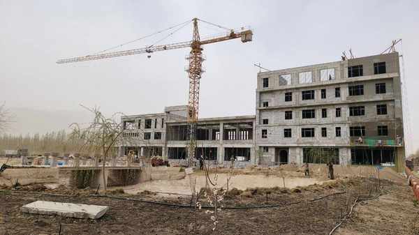 日前,記者在新疆天塞酒莊二期工程項目現場看到,剩餘項目主體工程已經完成施工,正在進行外立面裝修 馬悅攝