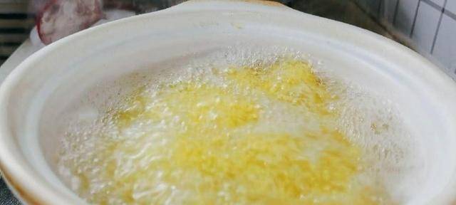 接著準備一個砂鍋,加入適量的純凈水,煮小米的時候我們最好選擇砂鍋,砂鍋的保溫性比較好,煮小米看似簡單,其實還是有非常多的講究的。