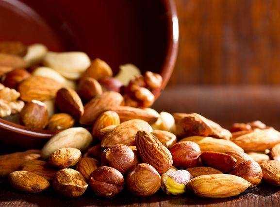 堅果中的不飽和脂肪酸有著降低血液當中膽固醇的作用,可以幫助改善血液循環,降低血液黏稠度,維護血管健康。堅果中豐富的維E又能改善脂質代謝,抑制血栓生成,從而起到降低心臟病和腦中風的作用。