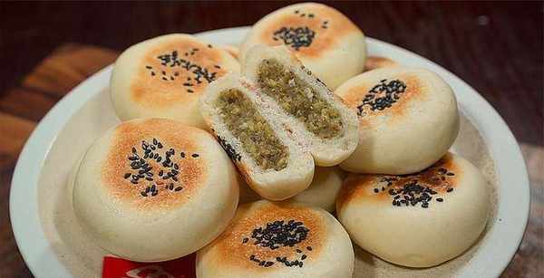 2、準備300克面粉,加入4克勾活性酵母,2克泡打粉,一勺白糖,再加入150毫升的清水,邊倒邊攪拌,用筷子攪拌成面絮狀,再加入40克玉米油,攪拌均勻,下手成表面光滑的面團。蓋上蓋子,洗面15分鐘,醒好的面團再搓成長條,切成大小均勻的面劑,再用搟面杖搟成一張面皮,放上一團綠豆沙,虎口處慢慢收口微壓扁一些,全部做好後,再撒上一點黑芝麻。