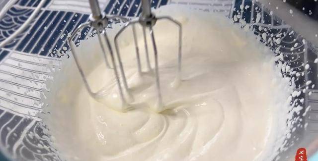 10、淡奶油加入5克的砂糖,打發至濃稠的酸奶狀,大概六七成發。