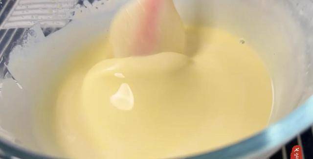 9、等溫度降到40度左右的時候,加入泡軟的吉利丁片,攪拌至完全融化。
