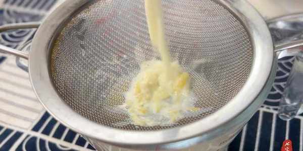 6、將泡好的檸檬牛奶過濾掉檸檬皮屑。