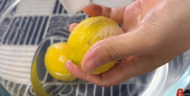 1、檸檬用鹽清洗幹凈外皮。