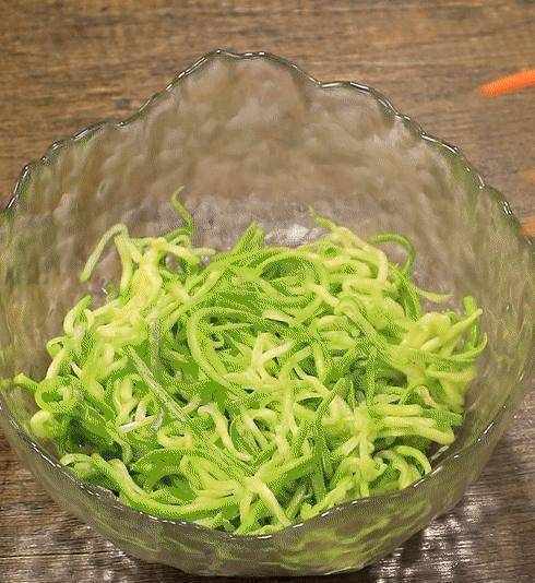 1.西葫蘆、胡蘿卜放入沸水中焯水2分鐘,然後全部擦絲。