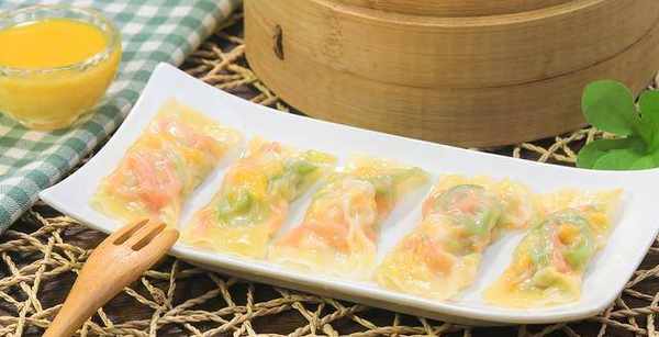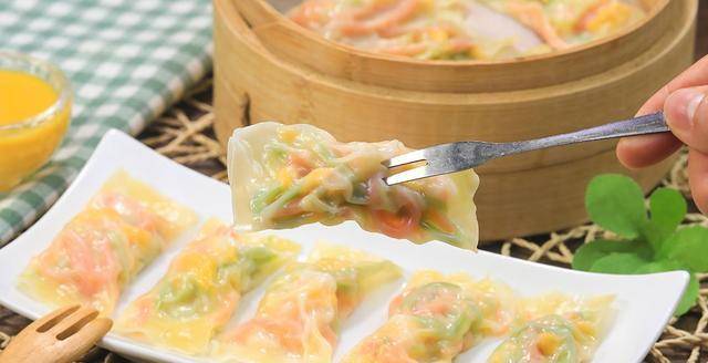隻需要把餡料放進餛飩皮中,卷起來就可以瞭,蒸完個個晶瑩剔透的。餡料的搭配原則就是蔬菜、肉、蛋,不知道用什麼食材就照我的做。