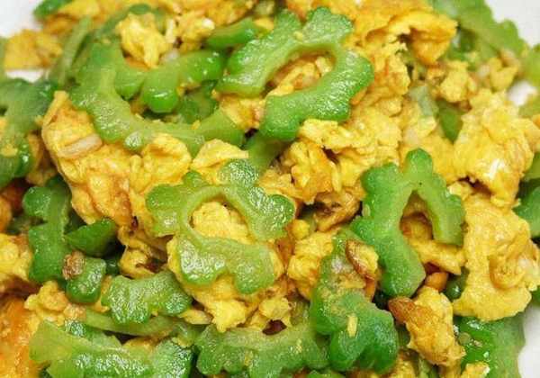 3、再次起鍋燒油,油熱後放入蒜末爆香,再放入苦瓜翻炒一會兒,炒軟後放入雞蛋翻炒均勻。加入適量的食鹽調味,翻炒幾下炒入味即可出鍋裝盤開吃。