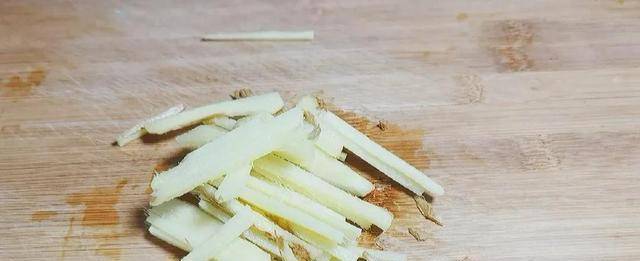 一接著再準備一小塊生薑,生薑薑肉屬於熱性的,薑皮屬於涼性的,兩者正好可以中和,所以我們在吃生薑的時候最好帶皮一起吃。清洗幹凈的生薑,去掉生薑表面的老皮,再把生薑切成薄片,最後把生薑切成細絲。