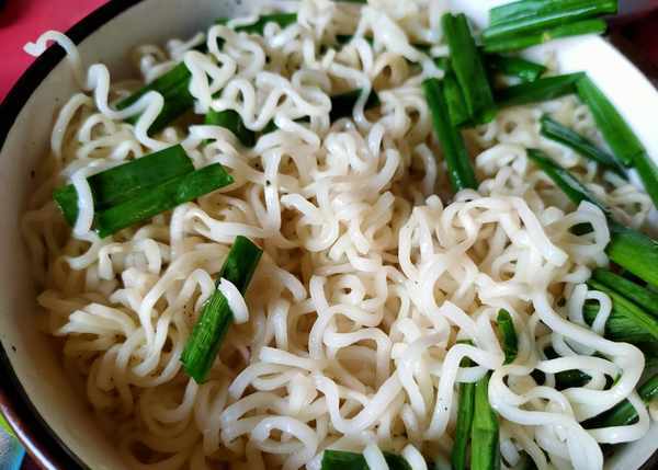 我發現大嫂做什麼菜都喜歡放醬油,唯獨這面條就不放醬油,白白的,一點兒顏色都沒有,看著很素。嘗瞭一口,實在是咸得離譜,不去加點開水稀釋鹽分,簡直吃不下。