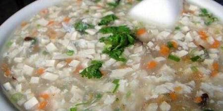 平橋豆腐羹是淮安平橋創制的漢族傳統名菜,屬於淮揚菜系。原料是定制的鹽鹵點漿的細嫩豆腐。先將豆腐放冷水鍋內煮透,取出後略壓,去掉水分,再切成薄片,放水中待用。