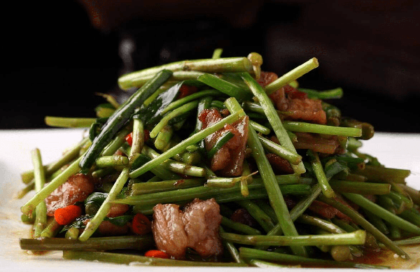 藜蒿炒臘肉是一道具有江西南昌地方特色的美食,藜蒿是一種生長在鄱陽湖沿岸地區的野菜,富含維生素、礦物質和膳食纖維等營養成分,並有獨特清香。首先,將臘肉切成小塊,放入不粘鍋中慢慢煸炒,將油脂煸出後再加入藜蒿翻炒,加幾滴生抽即可,炒藜蒿時一定要控制好火候,不要過長時間加熱藜蒿,以免破壞口感。