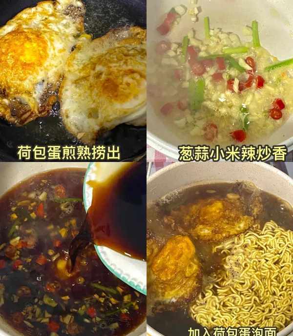 做法:先煎荷包蛋煎熟撈出;調個料汁,兩勺生抽 一勺老抽 一勺蠔油 一勺醋 一勺白糖 加水攪拌均勻;鍋中燒油下入蒜末 小米辣蔥 炒香倒入醬汁加半碗水煮開;下入面餅荷包蛋燜煮3分鐘