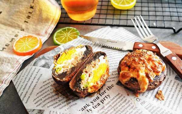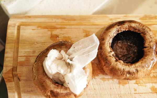 1、牛排菇洗凈後要用廚房紙巾吸幹表面水分,以免水分過多影響裝入食物和烤的時候太多汁