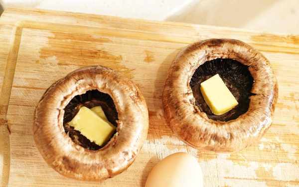 4、在每個牛排菇裡放入5克黃油