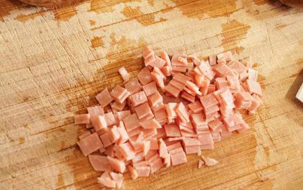 3、培根片切成小方塊備用