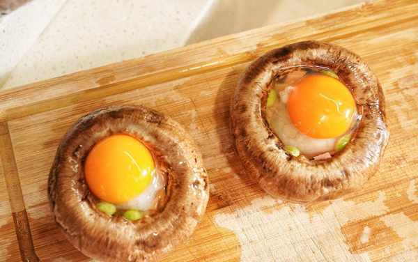 8、在每個牛排菇裡磕入一個雞蛋