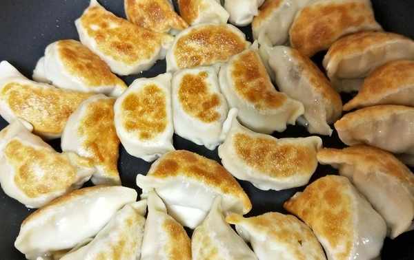 在平底鍋中加入適量油,將餃子放入鍋中,煎至底部金黃色。