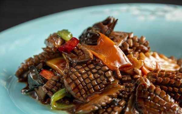 把煮熟的豬腰子撈出來,用冷水清潔一遍,脫去店表這層黏著一些油污和浮渣的部分,然後切成小塊準備炒菜。取適量油放到熱鍋中,放入適量薑蒜,煸炒出香味後放入豬腰子煸炒,直到變成淡黃色之後加入適量胡蘿卜、豆角、香菇等蔬菜,翻炒5分鐘後調入醬油、鹽等調味品,再翻炒5分鐘,這樣就可以裝盤瞭。
