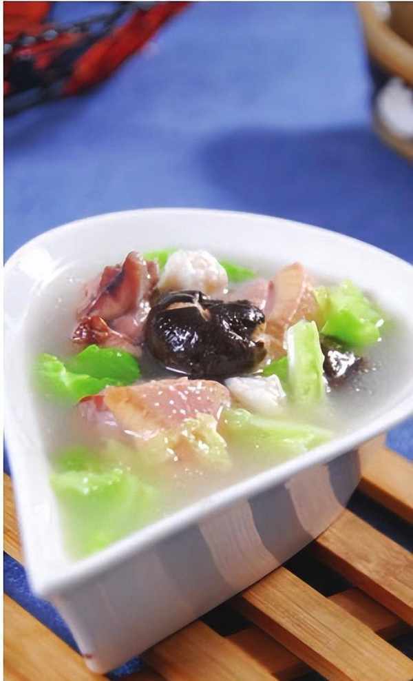 原料:鵝掌 500 克,香菇 100 克,冬筍肉 50 克,大棗 2 顆。