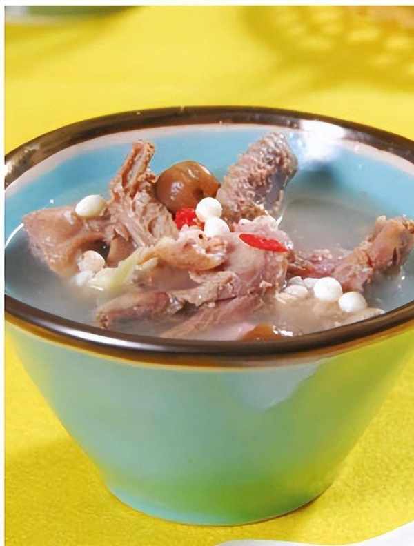 原料:豬骨 600 克,老鴿 2 隻(約 1000 克),淮山藥 50 克,薏米、芡實、桂圓肉各 25 克。
